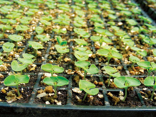 At the end of Stage 1, germination is complete, the radicle will have emerged and roots are beginning to form. | At the end of Stage 2, The roots are developing, a stem is present and the cotyledons have expanded. | At the end of Stage 3, the roots should be penetrating the plug cell and the first true leaves have developed. | At the end of Stage 4, the roots should hold the plug mass together easily. The shoots should have 2-3 sets of true leaves. |